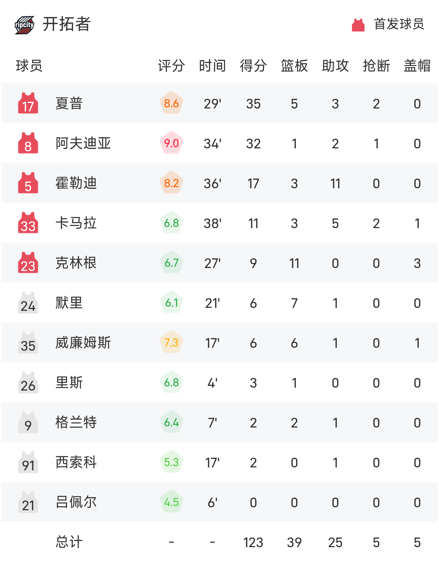 6686 खेल 13 नवंबर समाचार 25/26 NBA नियमित सीज़न में, पेलिकन का सामना ट्रेल ब्लेज़र्स से हुआ। खेल के अंत में, पेलिकन ट्रेल ब्लेज़र्स से 117-125 से हार गए। शार्प ने गेम में सर्वाधिक 35 अंक, 5 रिबाउंड और 3 सहायता अर्जित की, जिससे ट्रेल ब्लेज़र्स को जीत मिली।