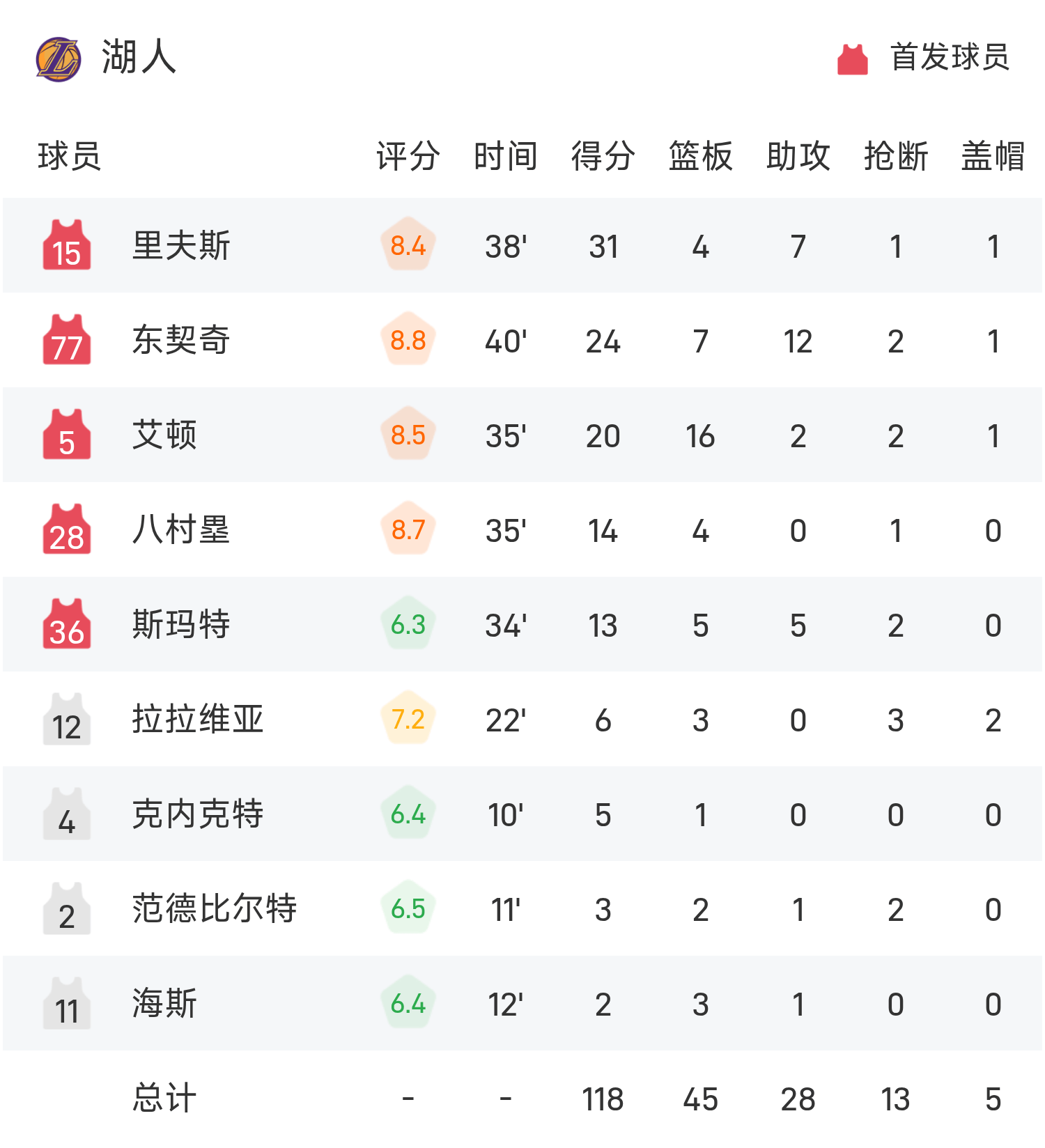खेल के अंत में, पेलिकन लेकर्स से 104-118 से हार गए।
