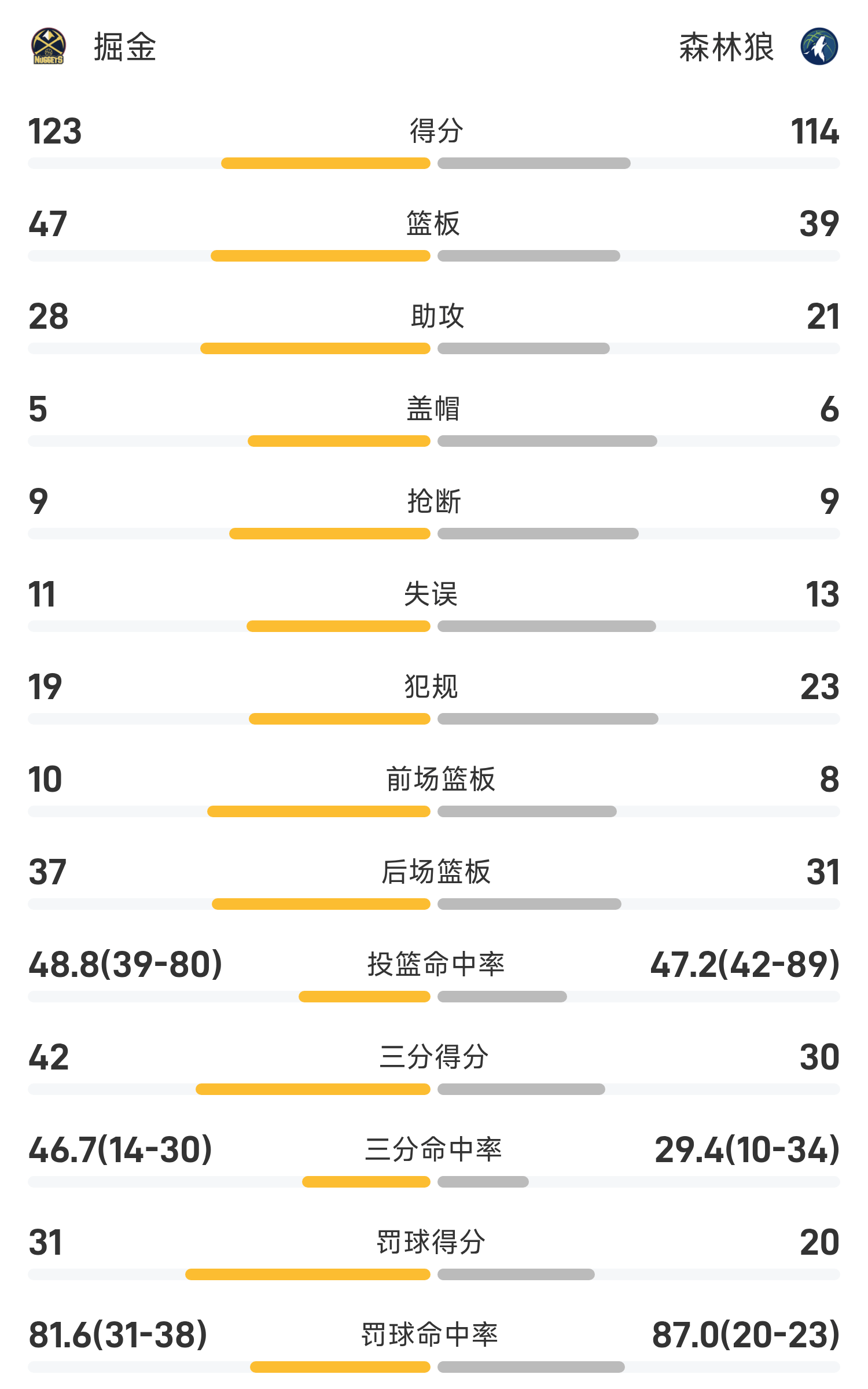 6686 स्पोर्ट्स 16 नवंबर समाचार 25/26 NBA नियमित सीज़न में, टिम्बरवॉल्व्स ने नगेट्स का सामना किया। खेल के अंत में, टिम्बरवॉल्व्स नगेट्स से 112-123 से हार गए। जोकिक ने गेम में सर्वाधिक 27 अंक, 12 रिबाउंड और 11 सहायता हासिल की, जिससे नगेट्स को जीत मिली।