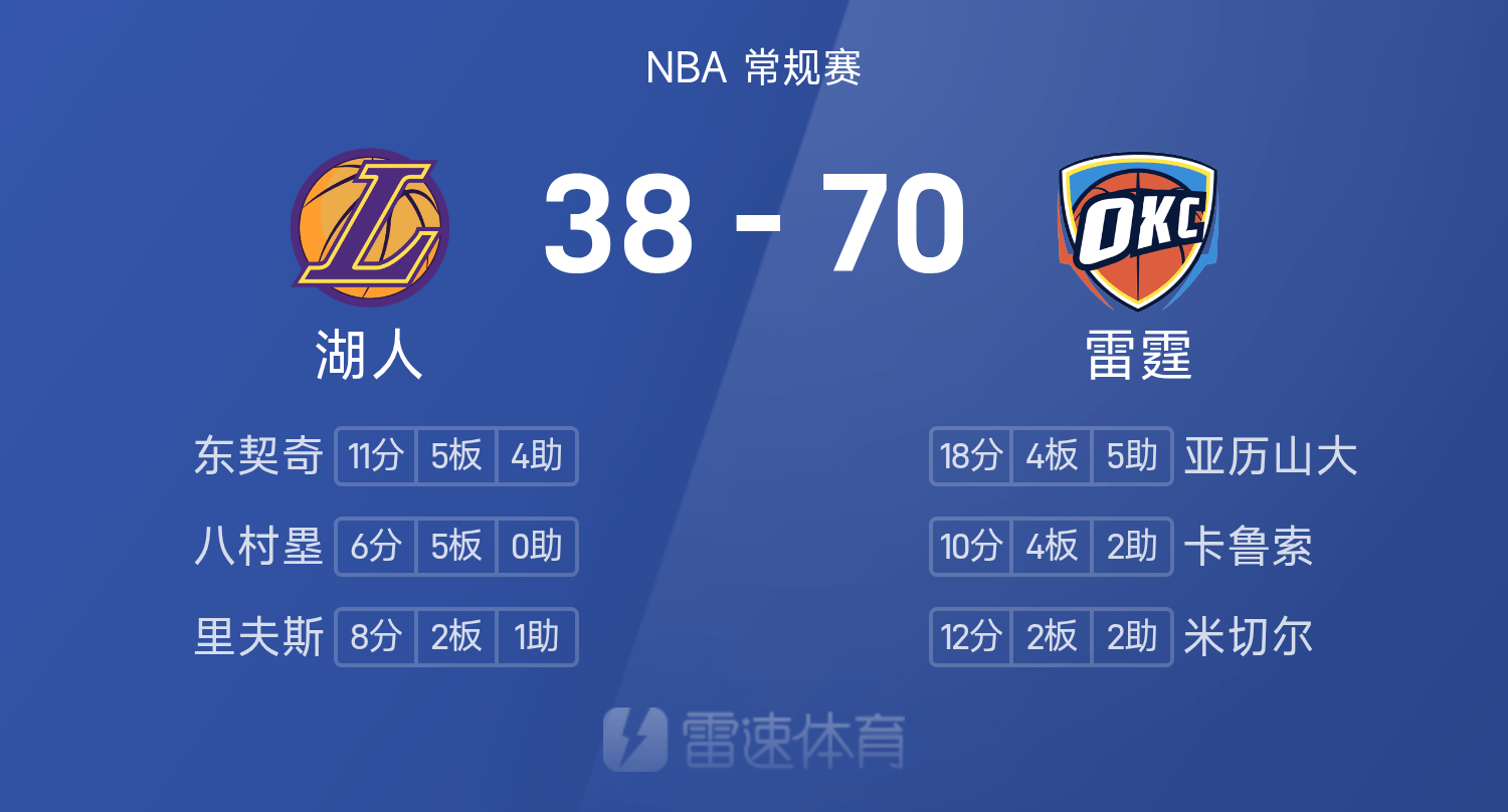 एनबीए हाफ़टाइम: एसजीए 18 अंक, डोंसिक 11 अंक, थंडर लेकर्स से 70-38 आगे