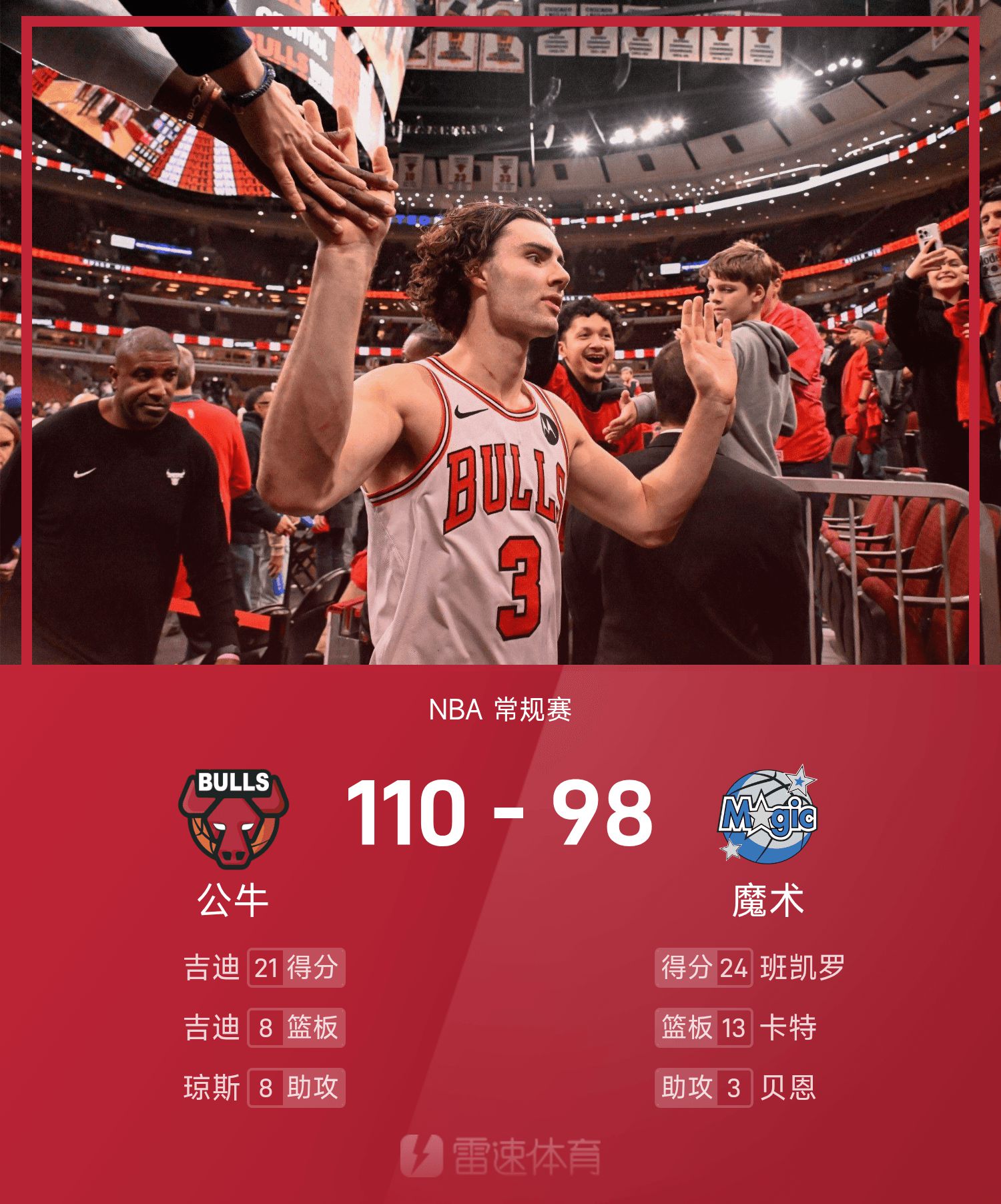 एनबीए युद्ध रिपोर्ट: बैंक्वेइरो 24+10 मुश्किल रक्षक, बुल्स ने मैजिक को 110-98 से हराया